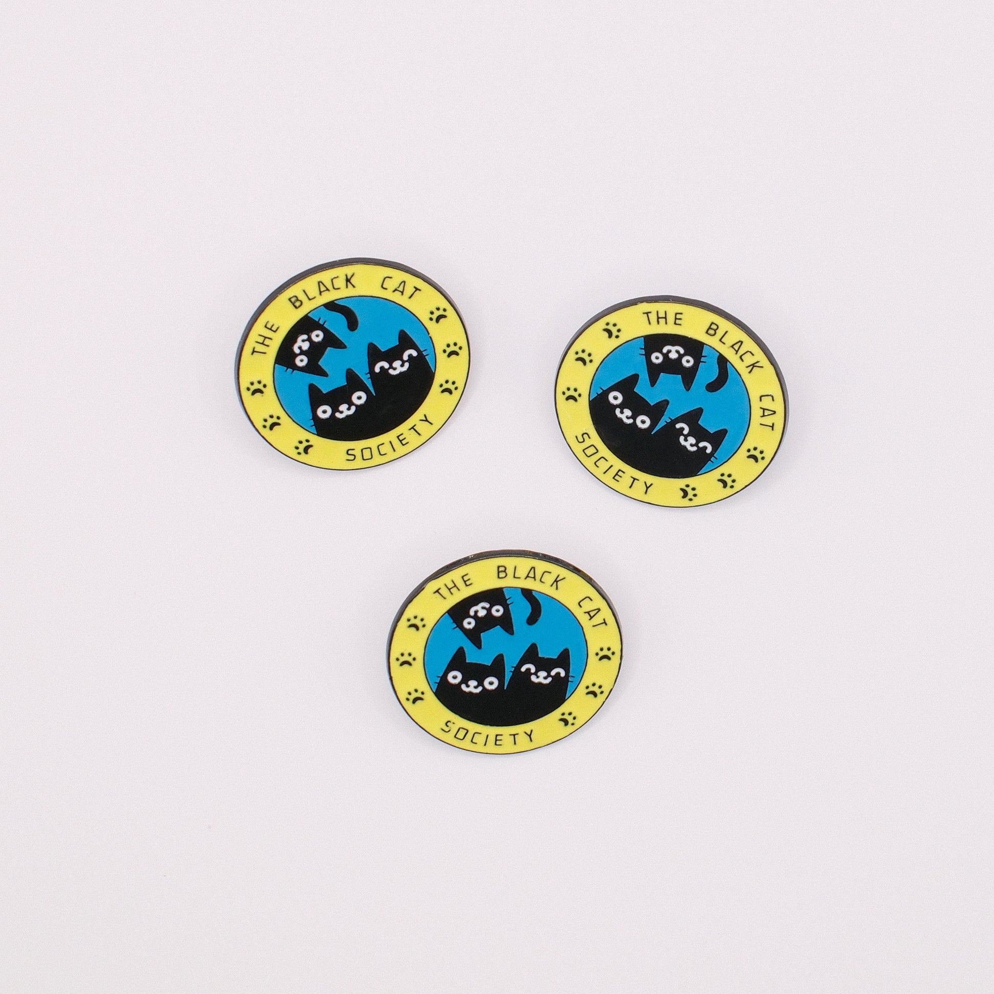 Featuring three charming black cats surrounded by a bright yellow border and tiny paw prints, this pin brings good luck, a sprinkle of mystery, and a whole lot of cuteness wherever it goes.