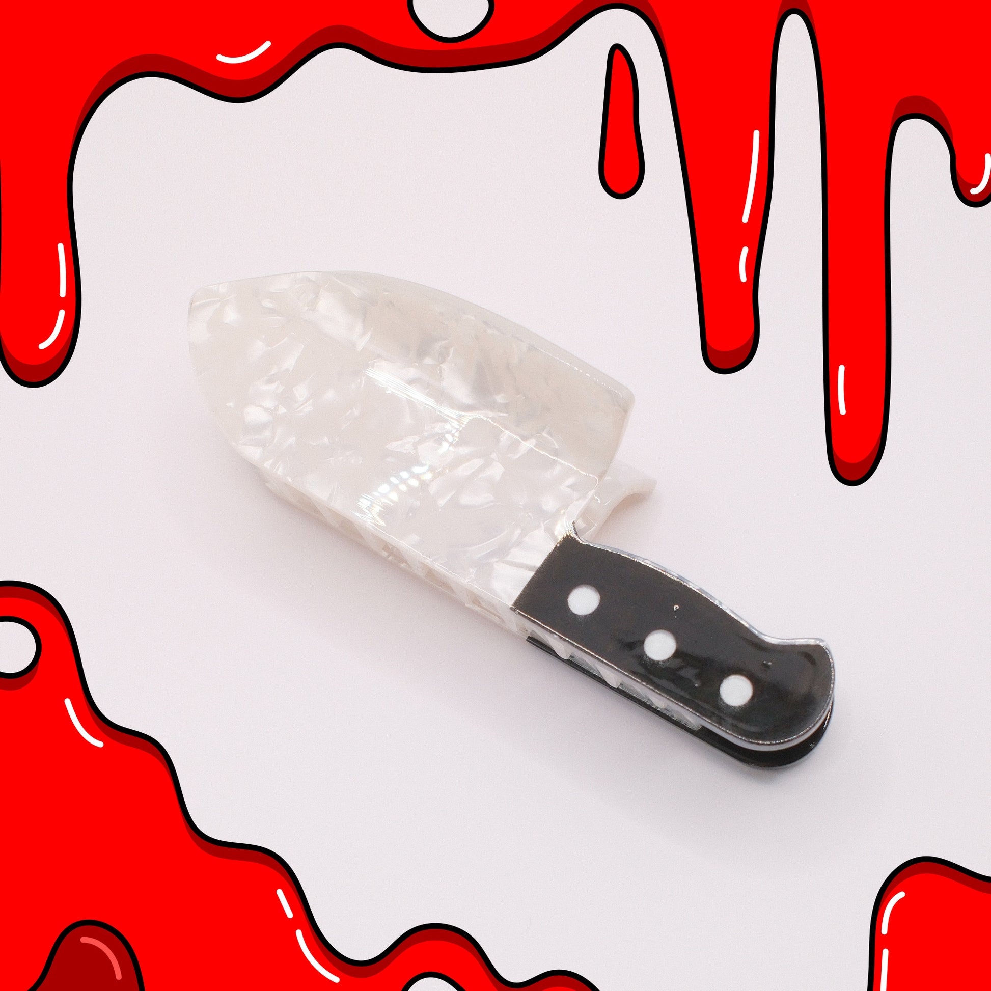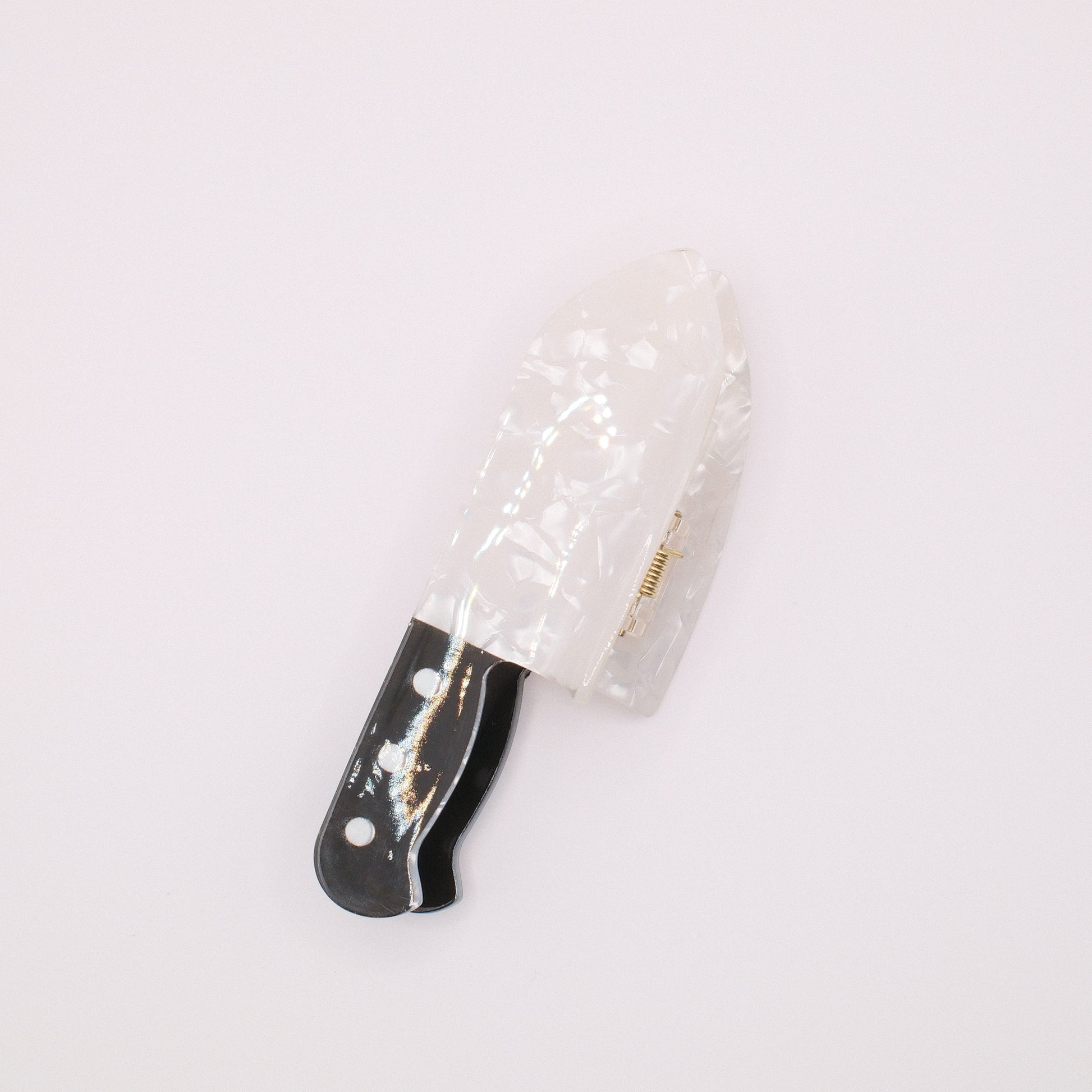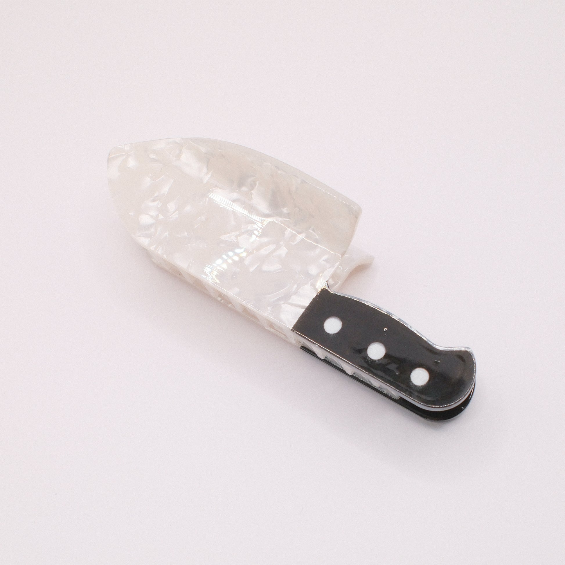 - Hair claw shaped like a butcher’s knife—white blade, black handle