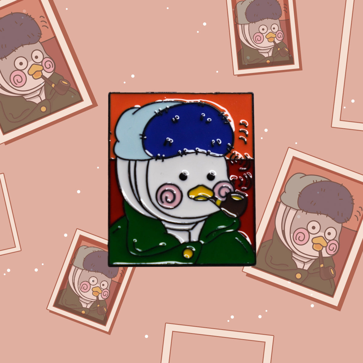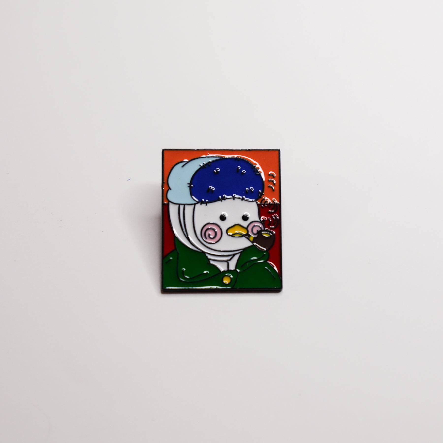 It’s a classic work of art—now with a feathered twist! This enamel pin takes the timeless "Man with a Pipe" and adds an irresistibly cute, chubby duck into the mix. The serious expression and pipe are still there, but now there’s a plump, wide-eyed duck looking just as contemplative (and totally adorable) as ever. Who knew ducks could be so sophisticated?