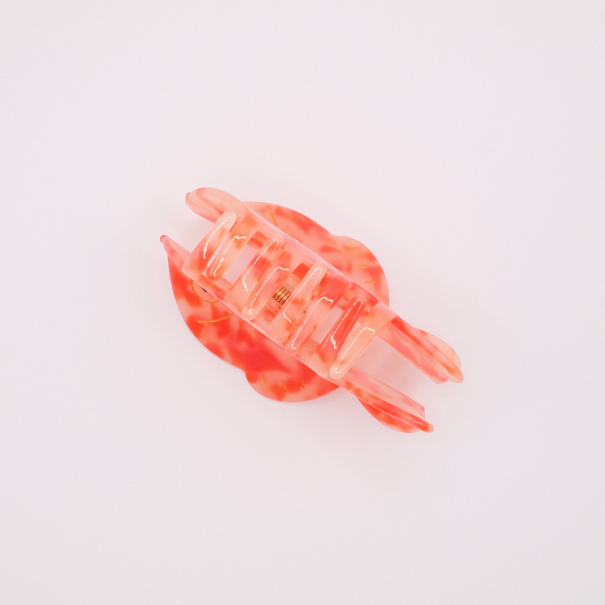 Make a graceful statement with this Goldfish Hair Claw, inspired by the calm beauty of flowing fins and glimmering scales. Crafted in a marbled orange acetate with golden details, this clip brings a touch of whimsy and elegance to your hairstyle.