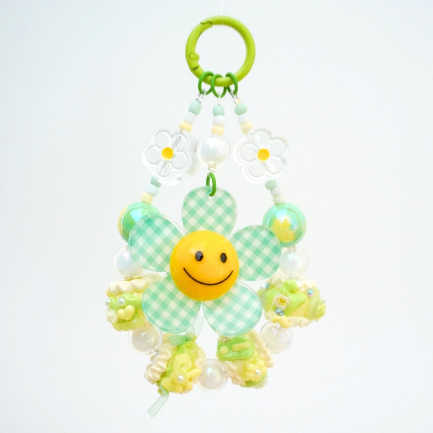 Brighten your everyday essentials with our Checkerbloom Beaded Charm, designed to bring a pop of colour and joy wherever it goes. Featuring a cheerful checker-pattern flower as the centrepiece, each charm is paired with a secondary loop of hand-painted beads that doubles as a functional strap.