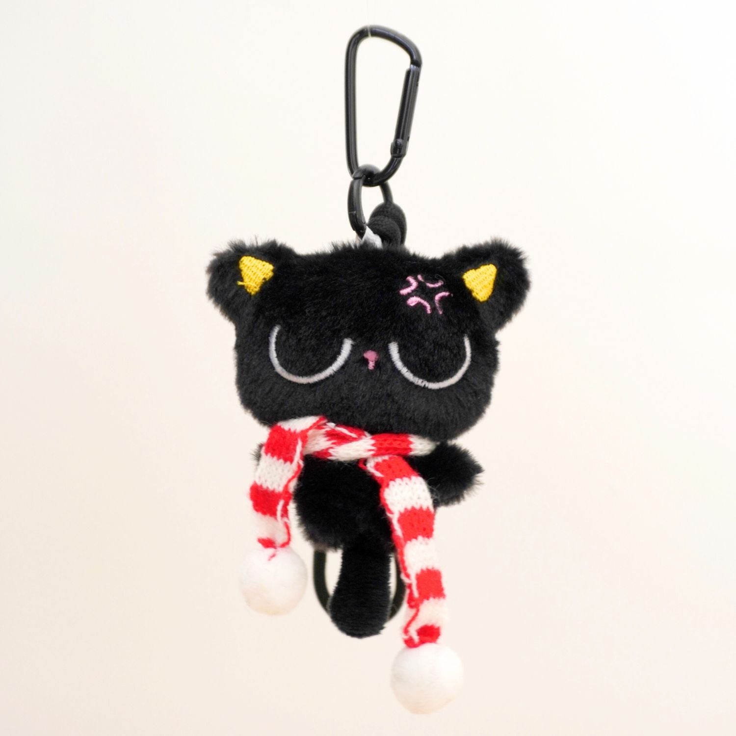 Meet our black cat who’s equal parts cute and cranky! Wrapped in a red-and-white striped scarf, this plush charm captures that “don’t talk to me before my nap” mood perfectly. With embroidered details and a fluffy finish, it’s the ultimate sidekick for your keys, tote, or backpack — especially when you’re running on zero patience (and maybe zero sleep).