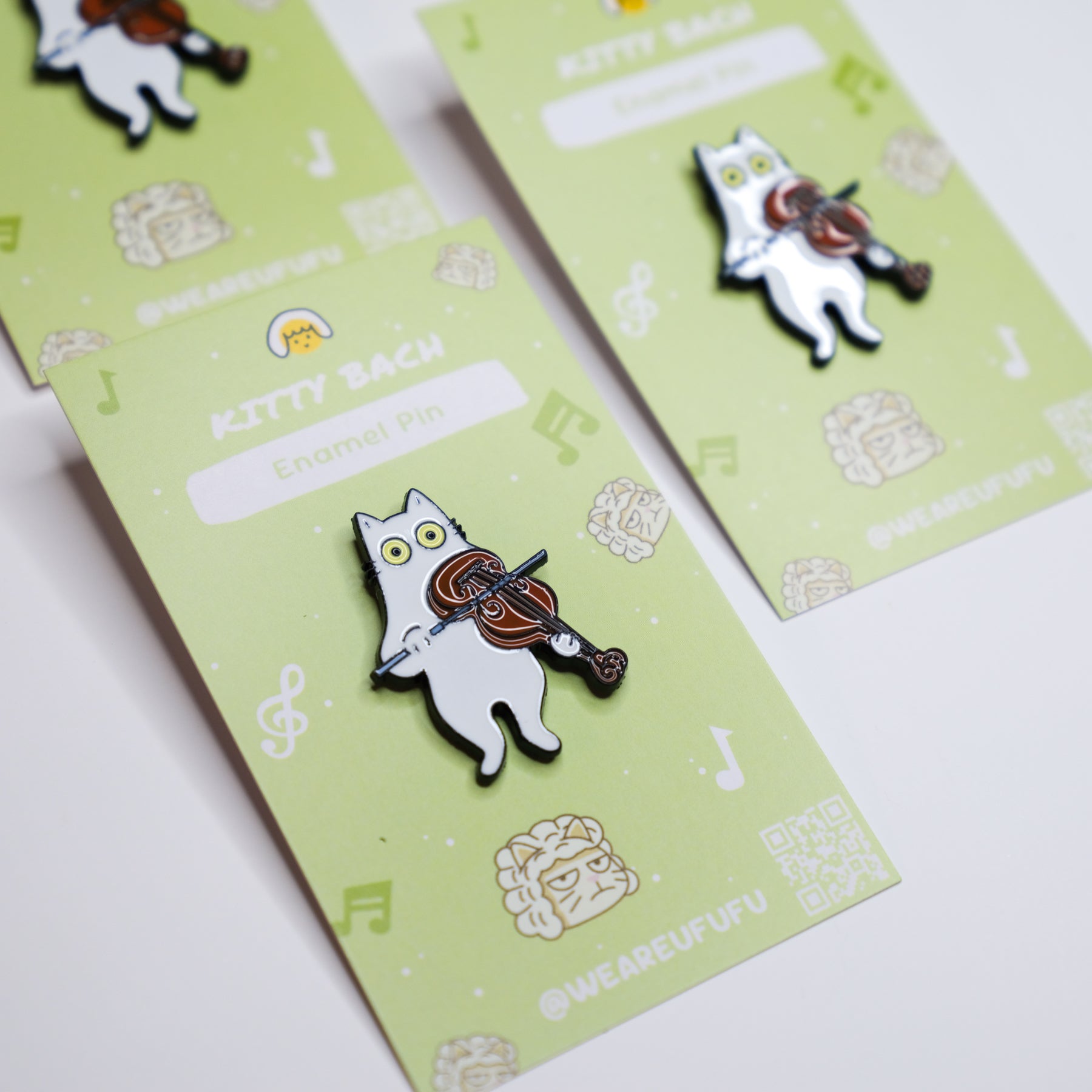 This pin is part of our βMusical Petsβ series, where each pet takes center stage with their own unique musical talent. Whether you're a classical music fan or just in need of some cute cat magic, this violin-playing feline will have you swooning.