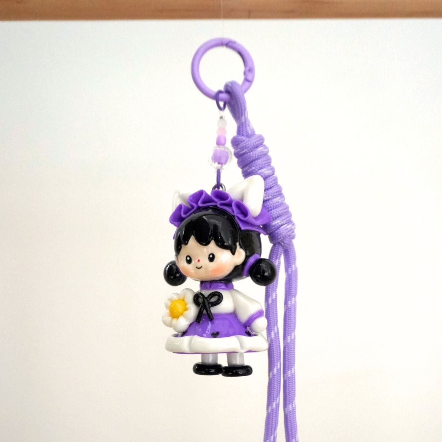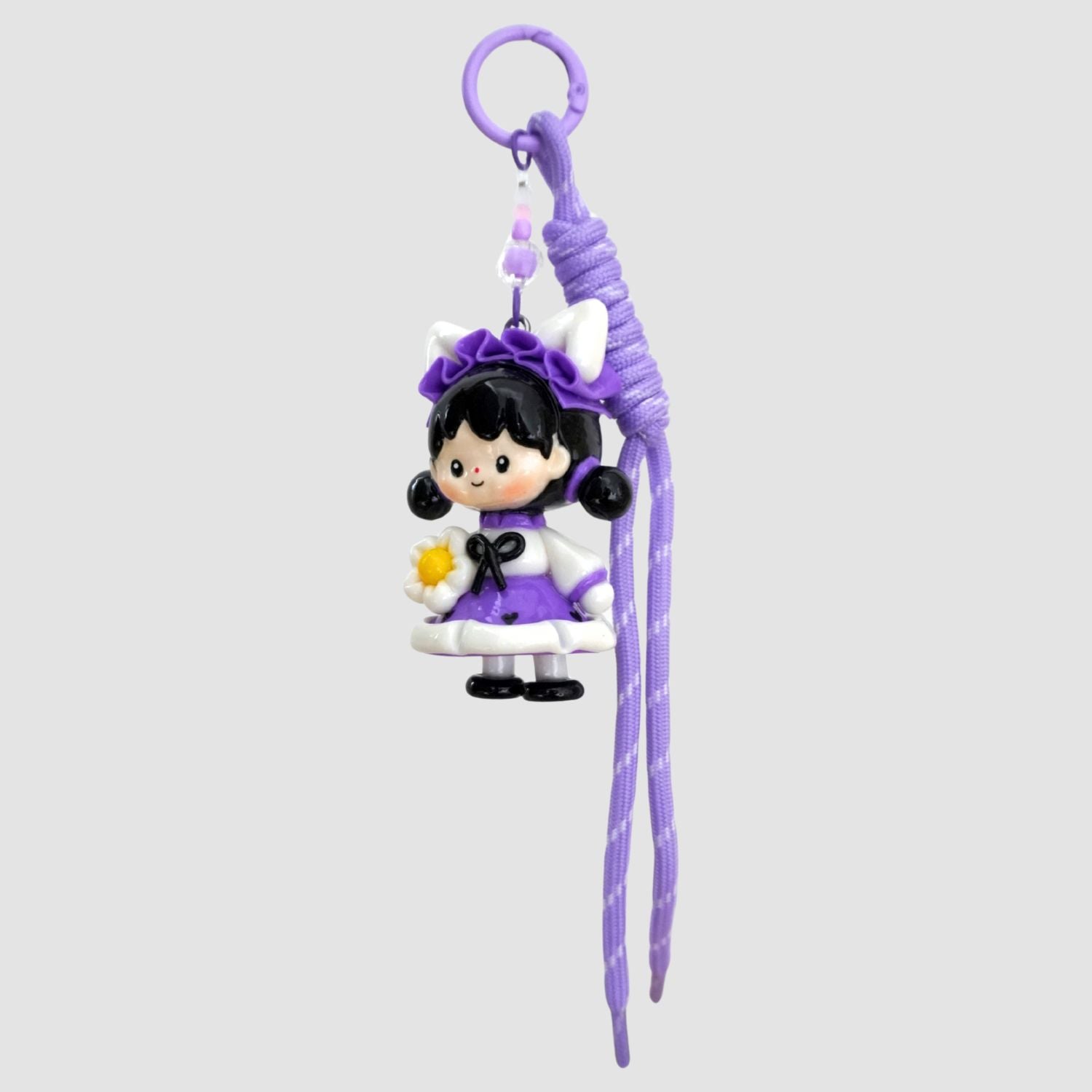 Paired with a matching lilac rope strap, sheβs ready to add a sprinkle of sweetness to your bag or keys.