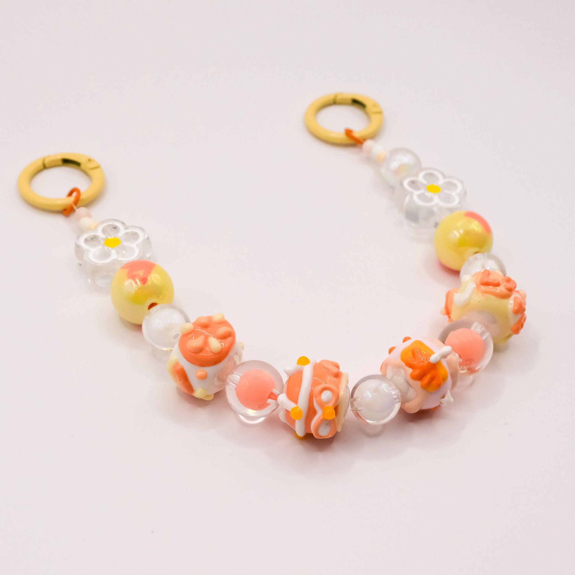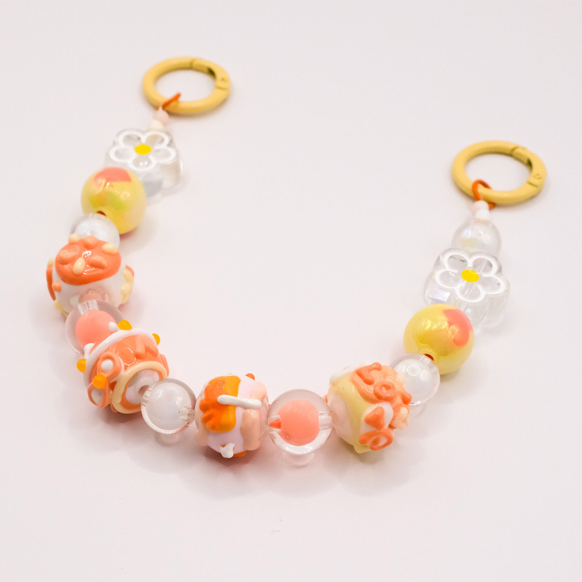 Bottle up the warmth of a golden hour with this one-of-a-kind charm! Every bead is a unique surprise in zesty orange, buttery yellow, and crisp white—like a confetti parade of sunshine. Hand-painted designs include: