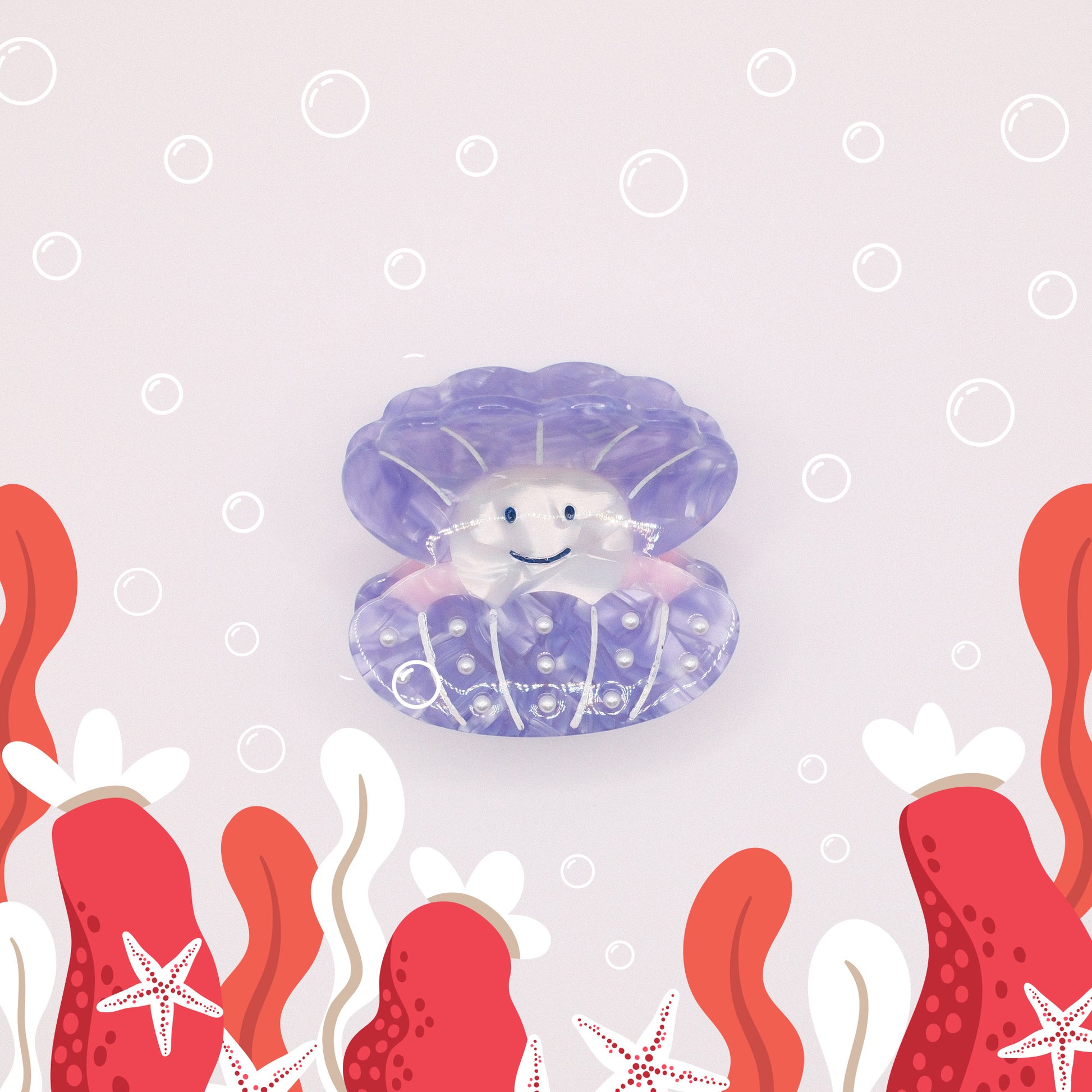 Bring a bit of underwater magic to your everyday look with the Pearl Shell Hair Claw. Featuring a smiling pearl nestled in a translucent lavender shell, this claw sparkles with tiny pearl embellishments that catch the light just right.
