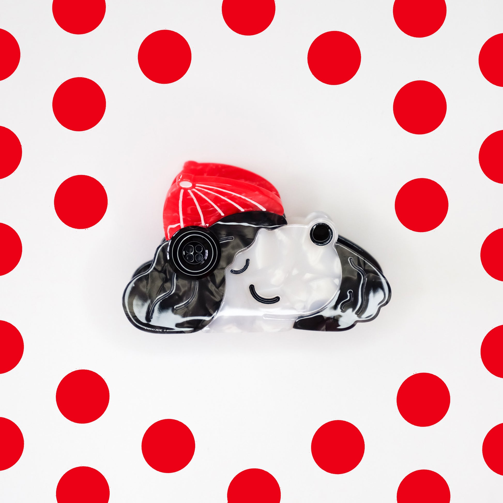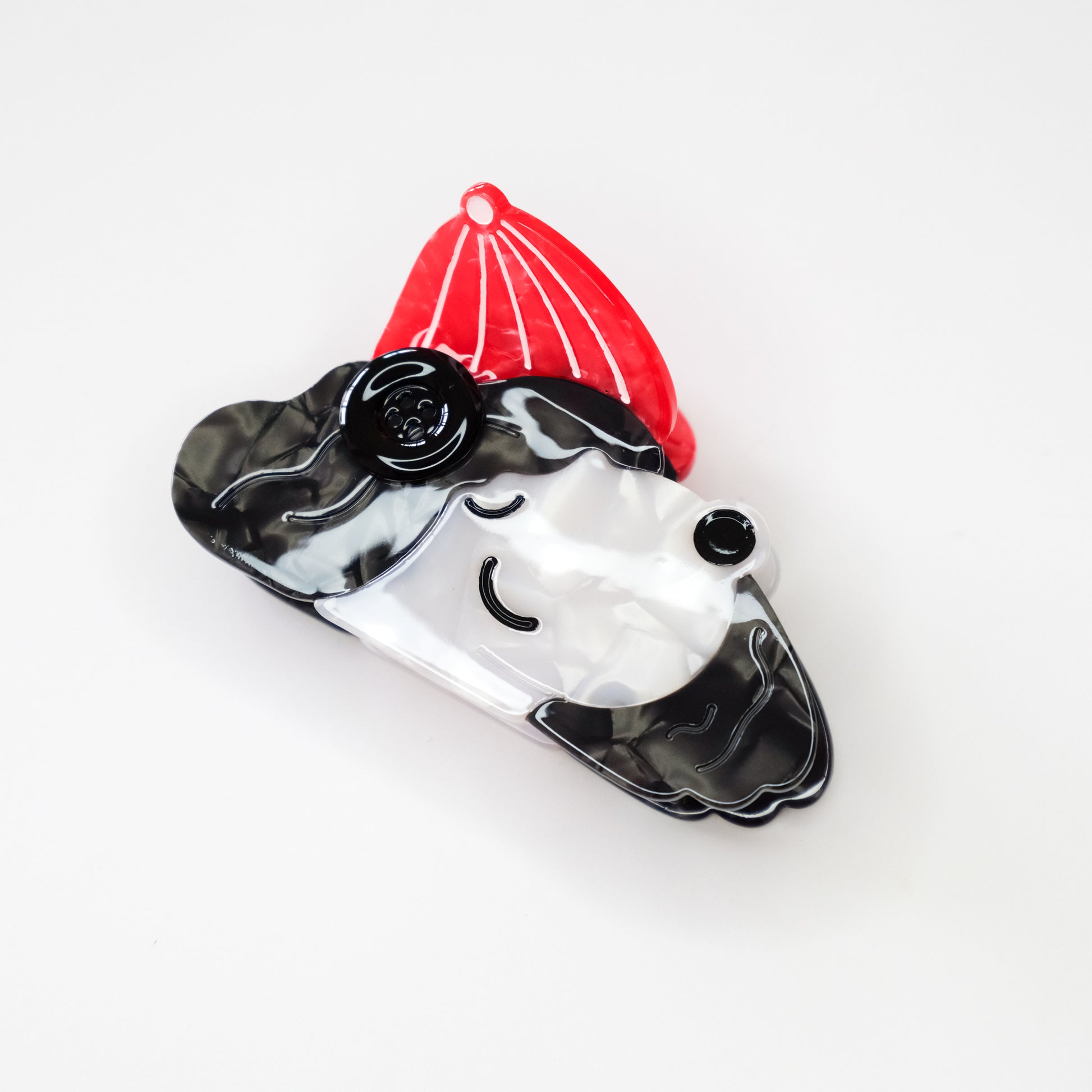 Turn heads and tails with our Poodle Hair Claw Clip—an irresistibly cute accessory that adds personality and charm to any look! Featuring a stylish white poodle wearing a bright red beanie, this claw clip is crafted from glossy acrylic with thoughtful details like textured fur, a sweet expression, and a black button.
