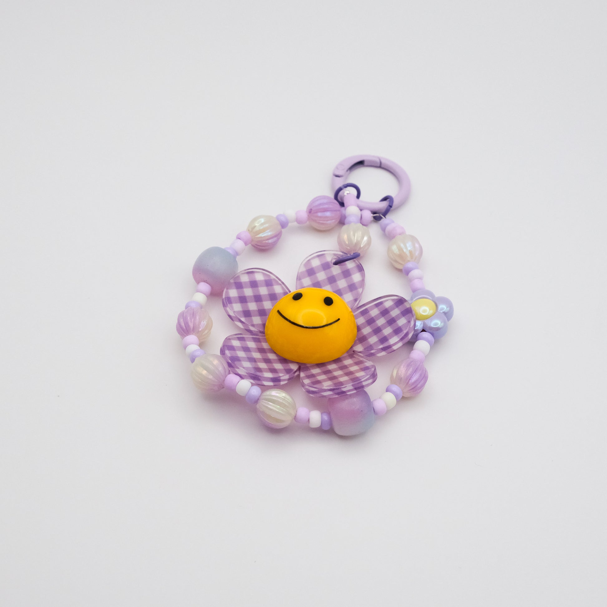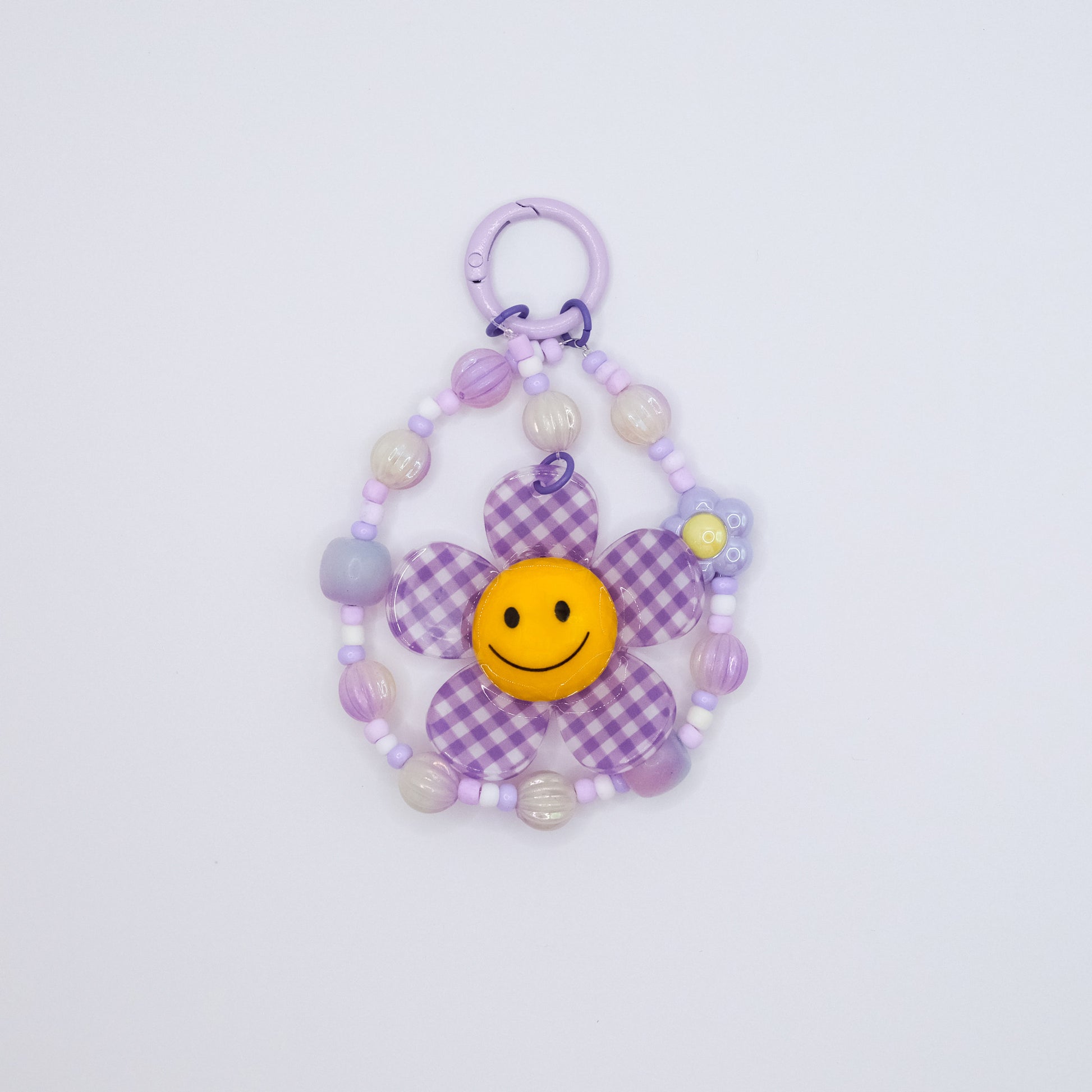 Spread floral cheer wherever you go with this playfully chic charm! Centered around a smiling checked-petal flower, this accessory is a burst of personality—perfect for dangling from your keys, phone, or favourite tote.