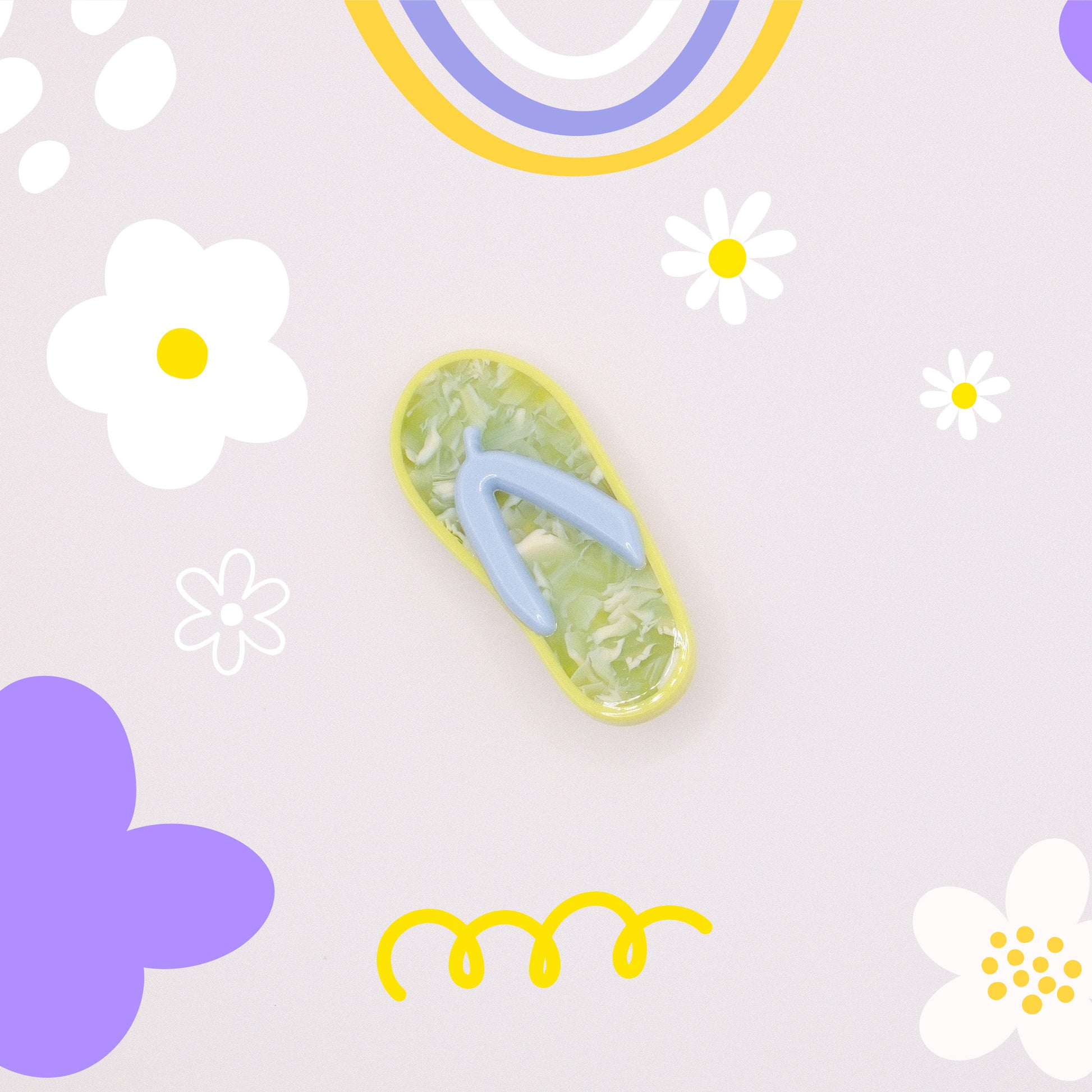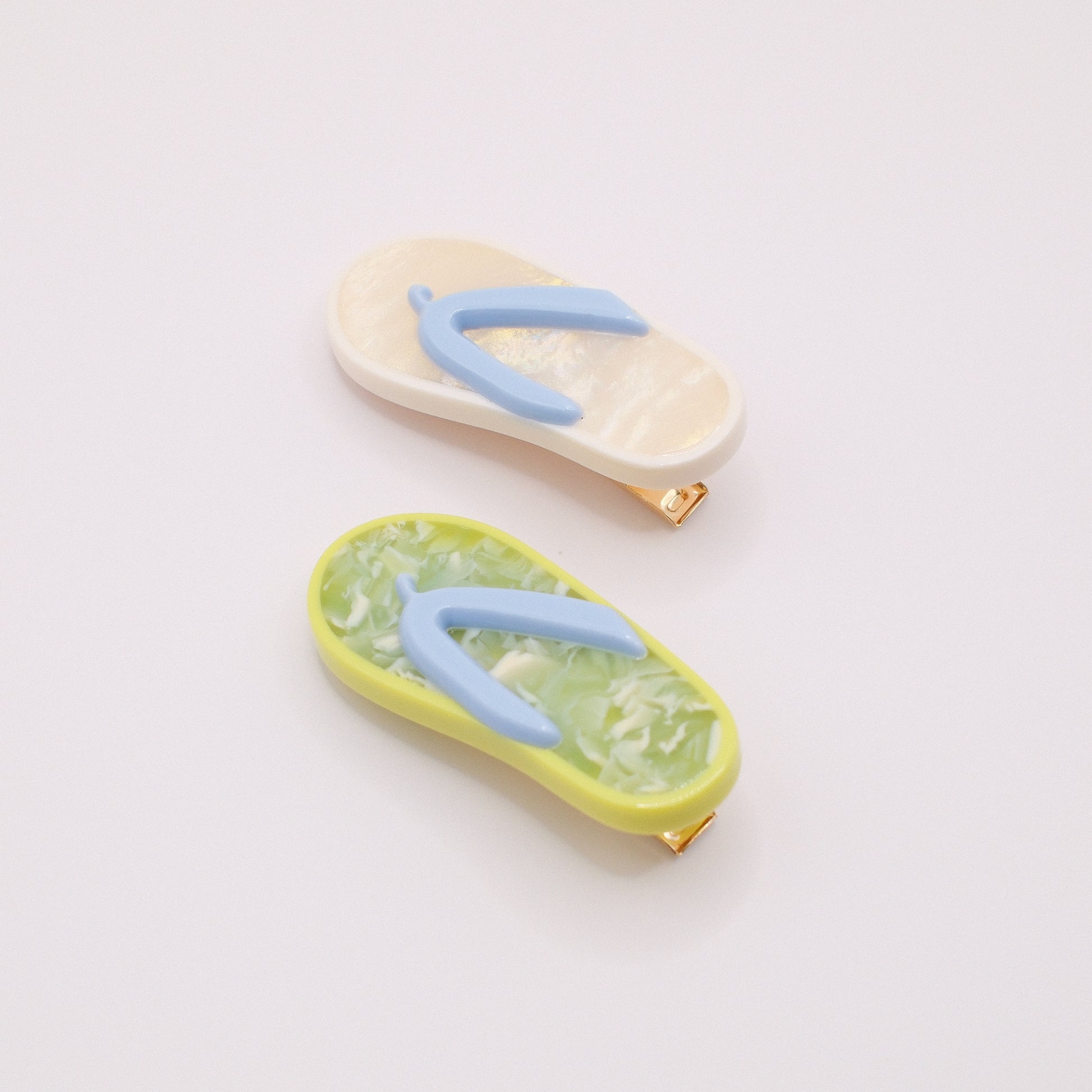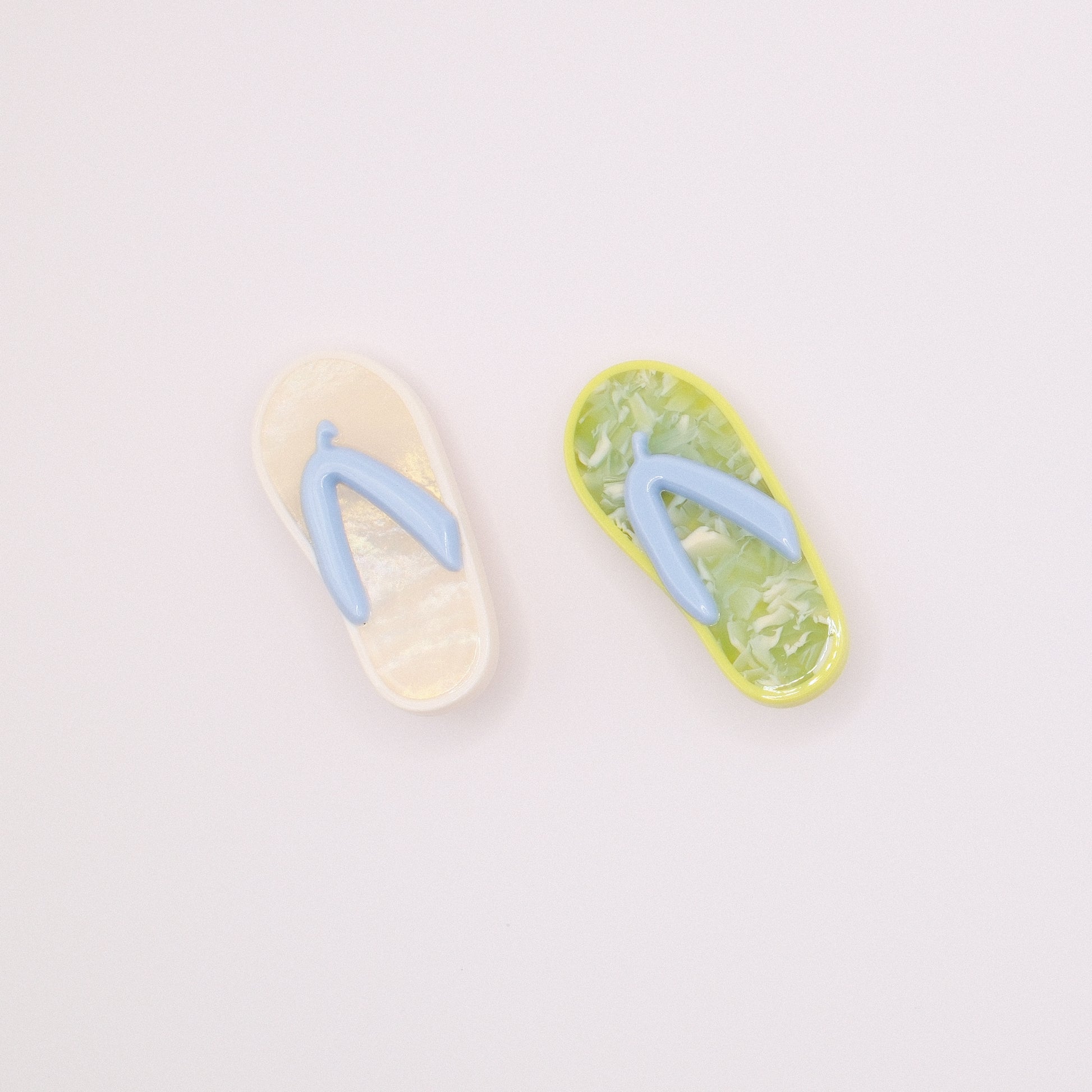 Add a splash of fun and freshness to your hairstyle with this Flip-Flop Hair Clip in lively green and soft blue. Inspired by sunny days and ocean breezes, this playful clip is the perfect accessory for anyone who loves a carefree, beachy vibe.