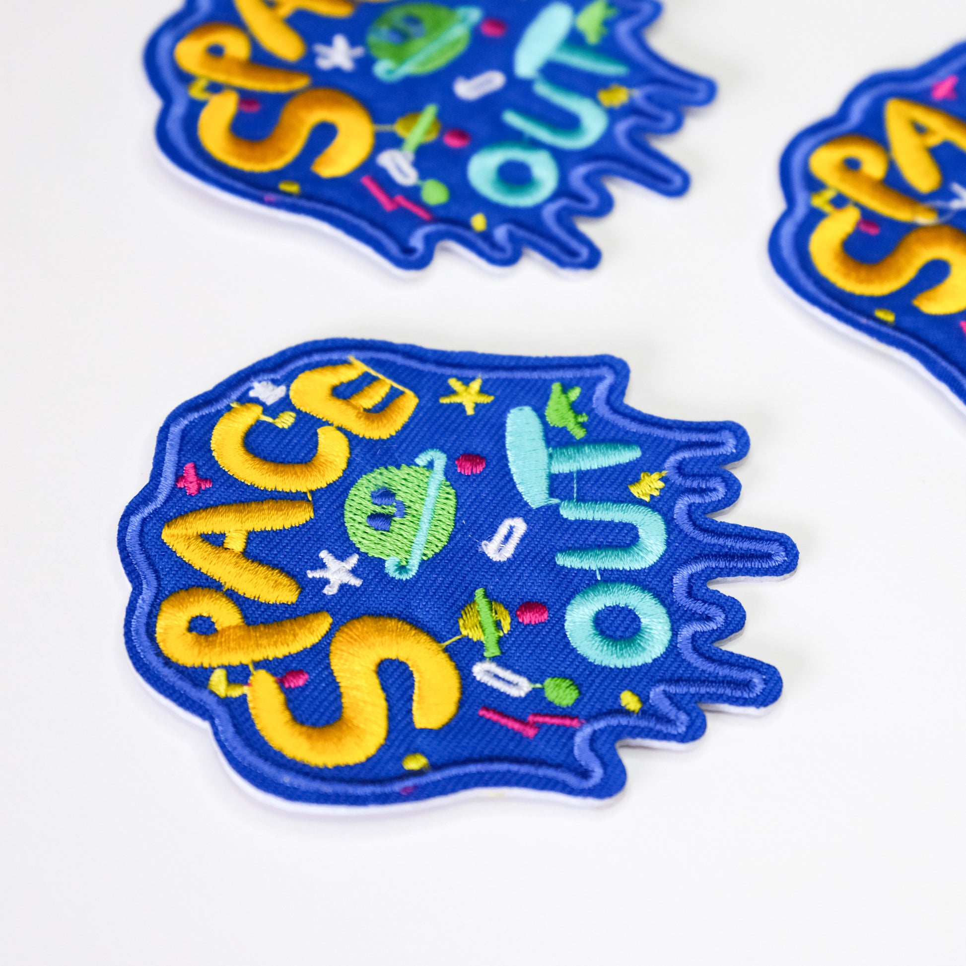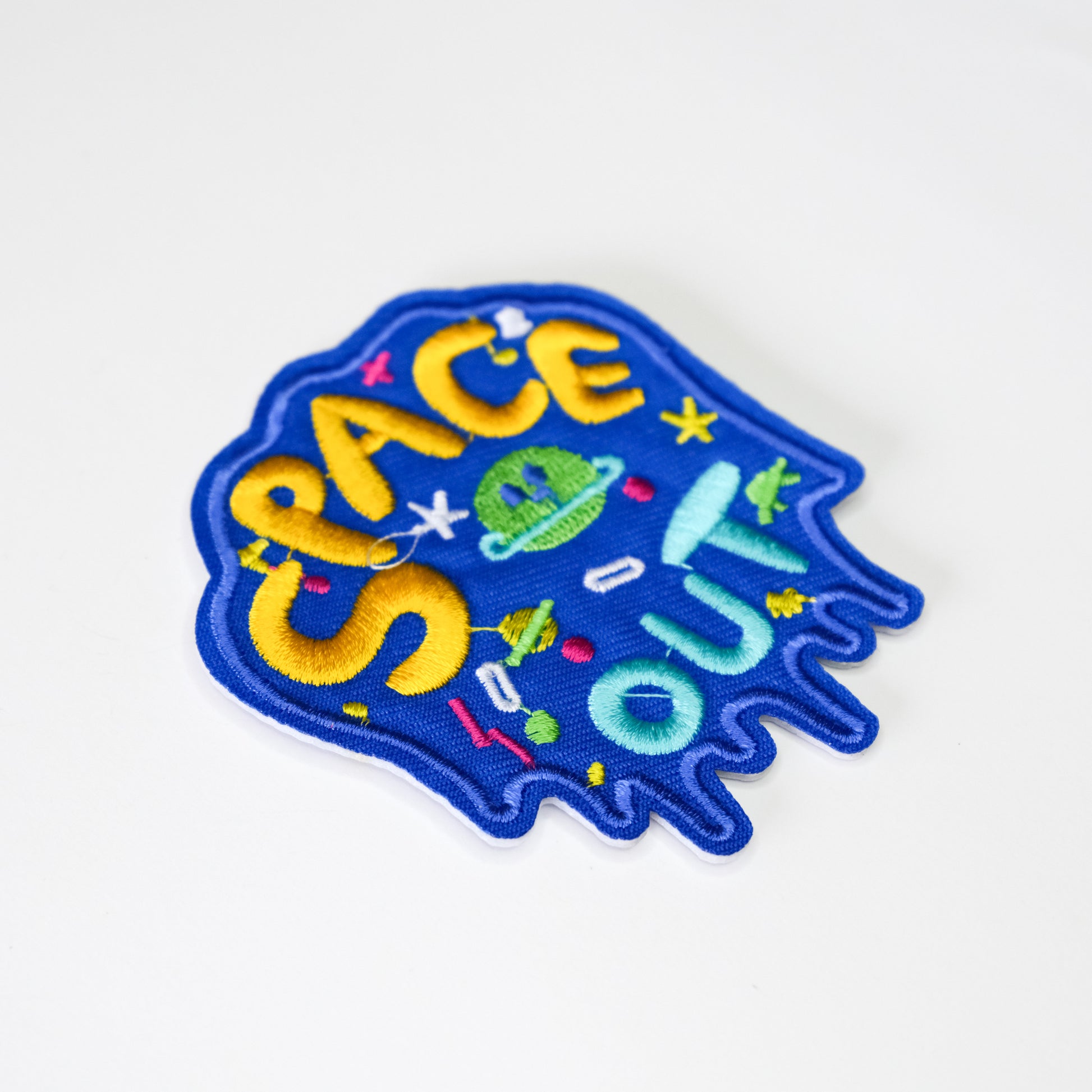 When your head’s in the clouds—or beyond them—this Space Out Patch is your cosmic badge of honour. Bright, bold, and just a little loopy, it features a neon UFO, scattered stars, and playful doodles that float in a dreamy galaxy of electric blue.