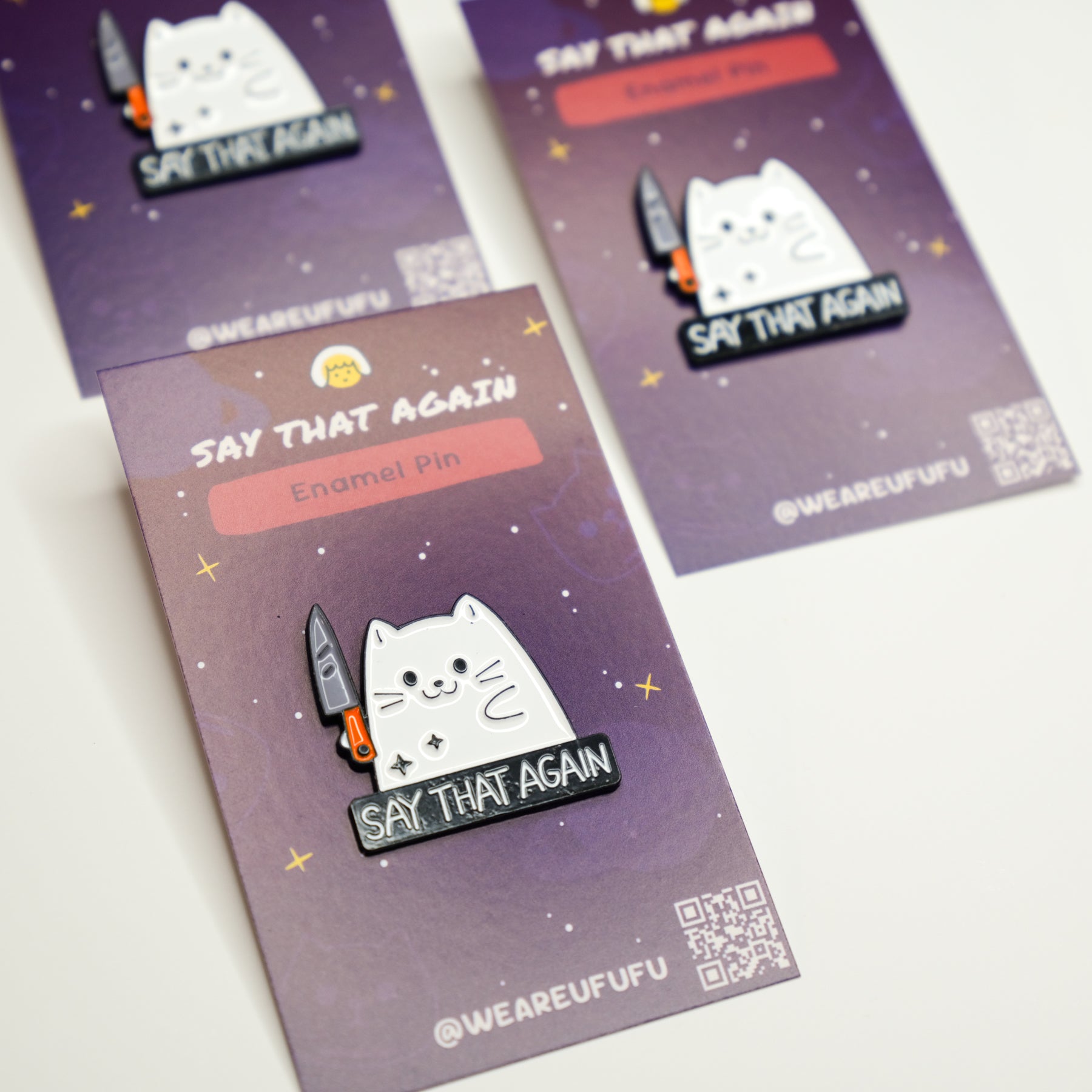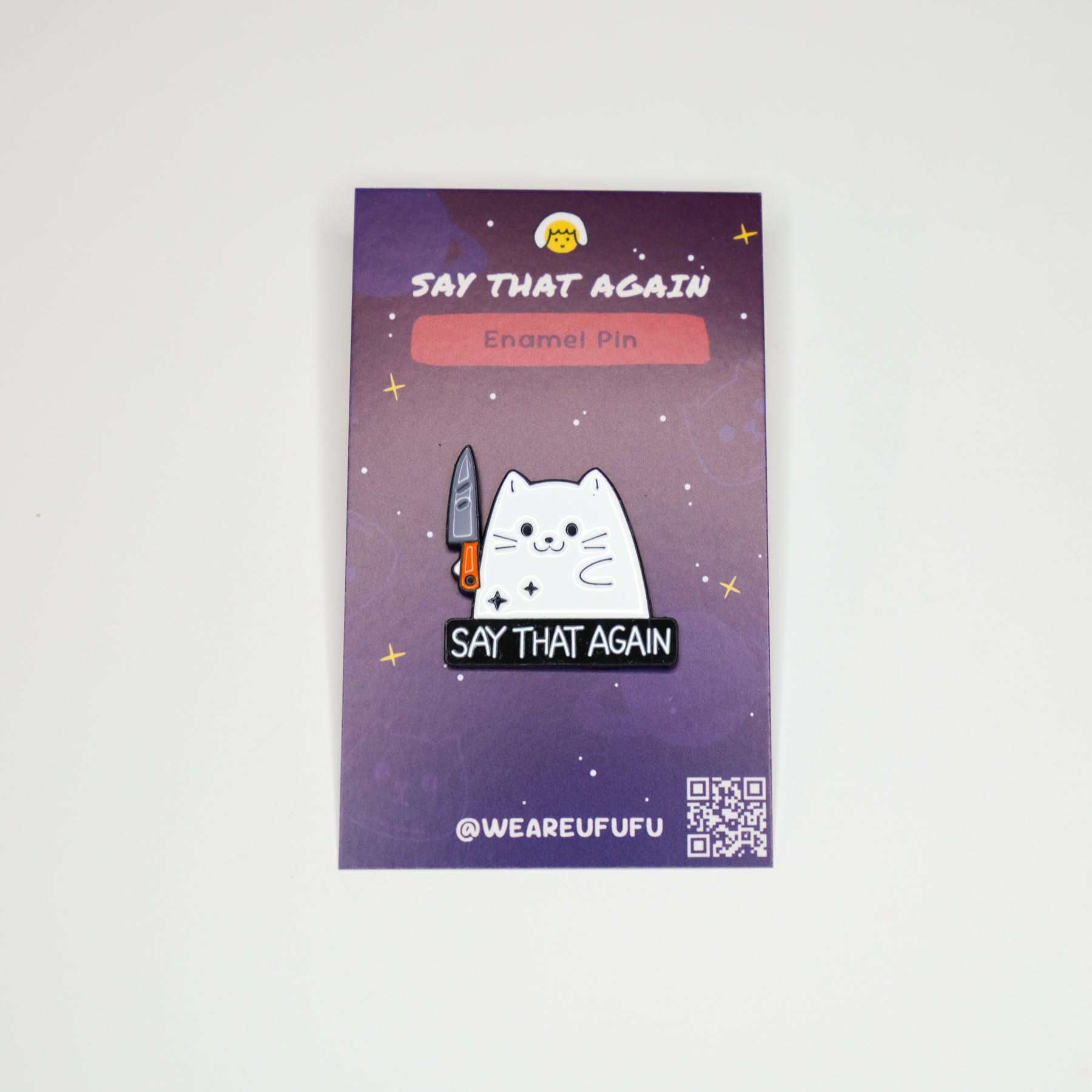 This cat is not here for your nonsense. With a knife in paw and a look that says, "Say that again," it’s the purrfect accessory for anyone who knows how to handle their business — and isn't afraid to show it! Whether you're setting boundaries, giving a side-eye, or just feeling a little feisty, this pin is here to make your message crystal clear: Don't mess with this cat.