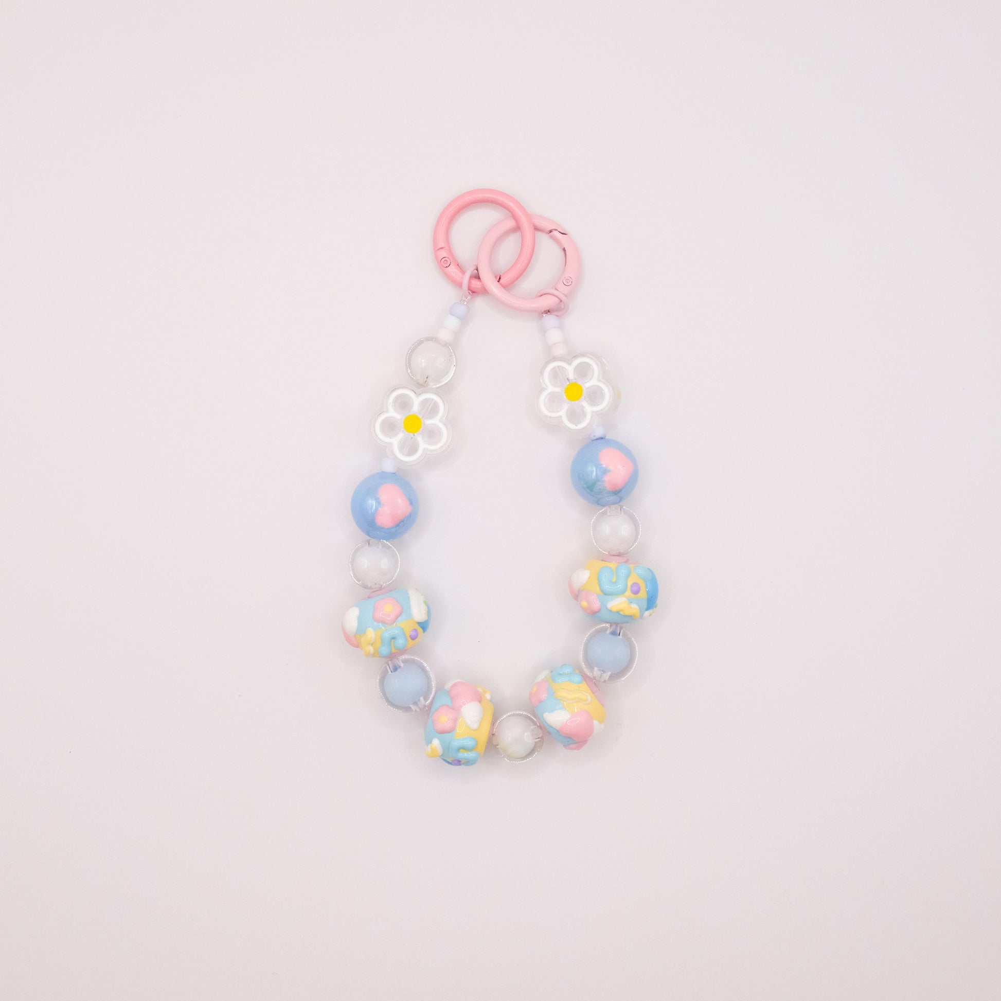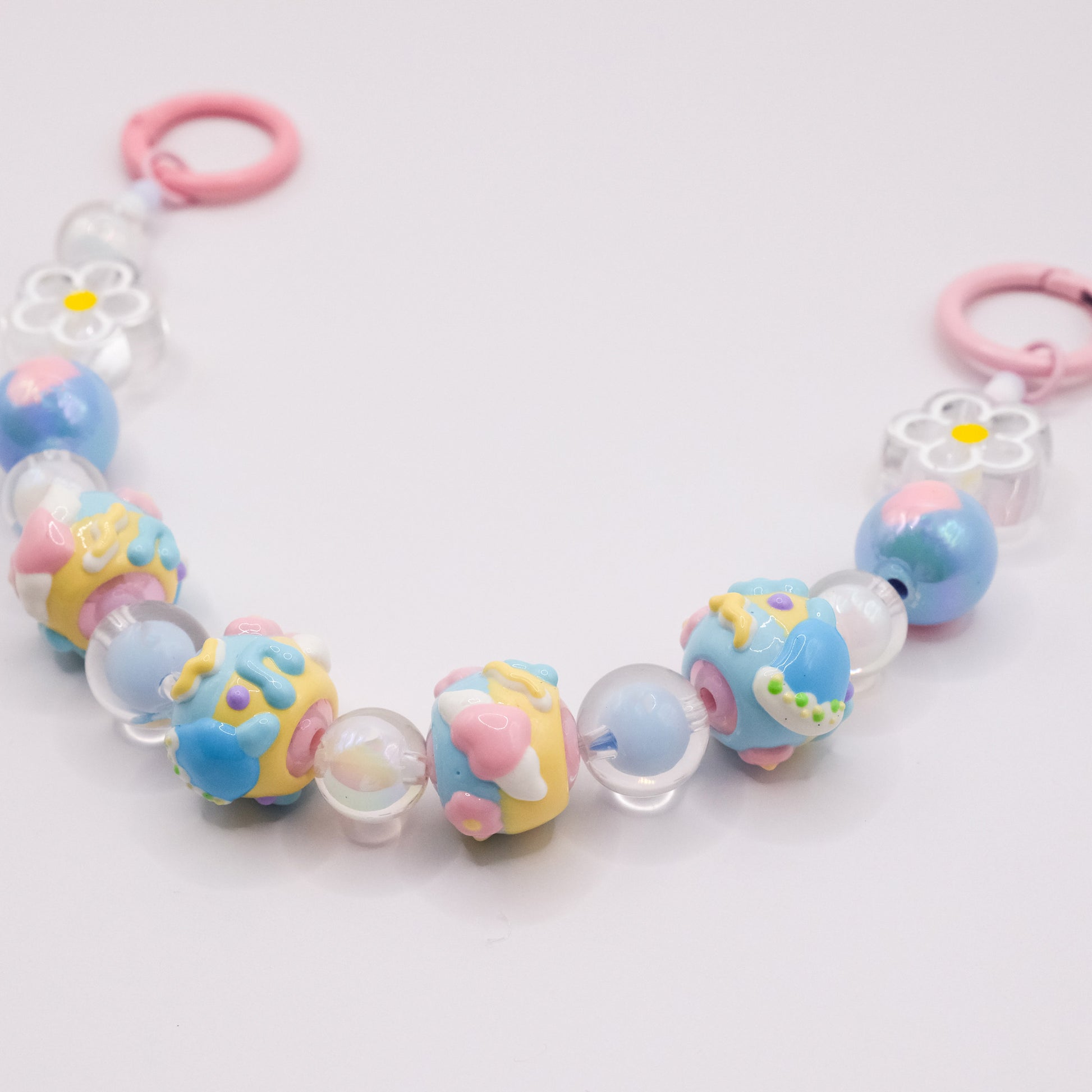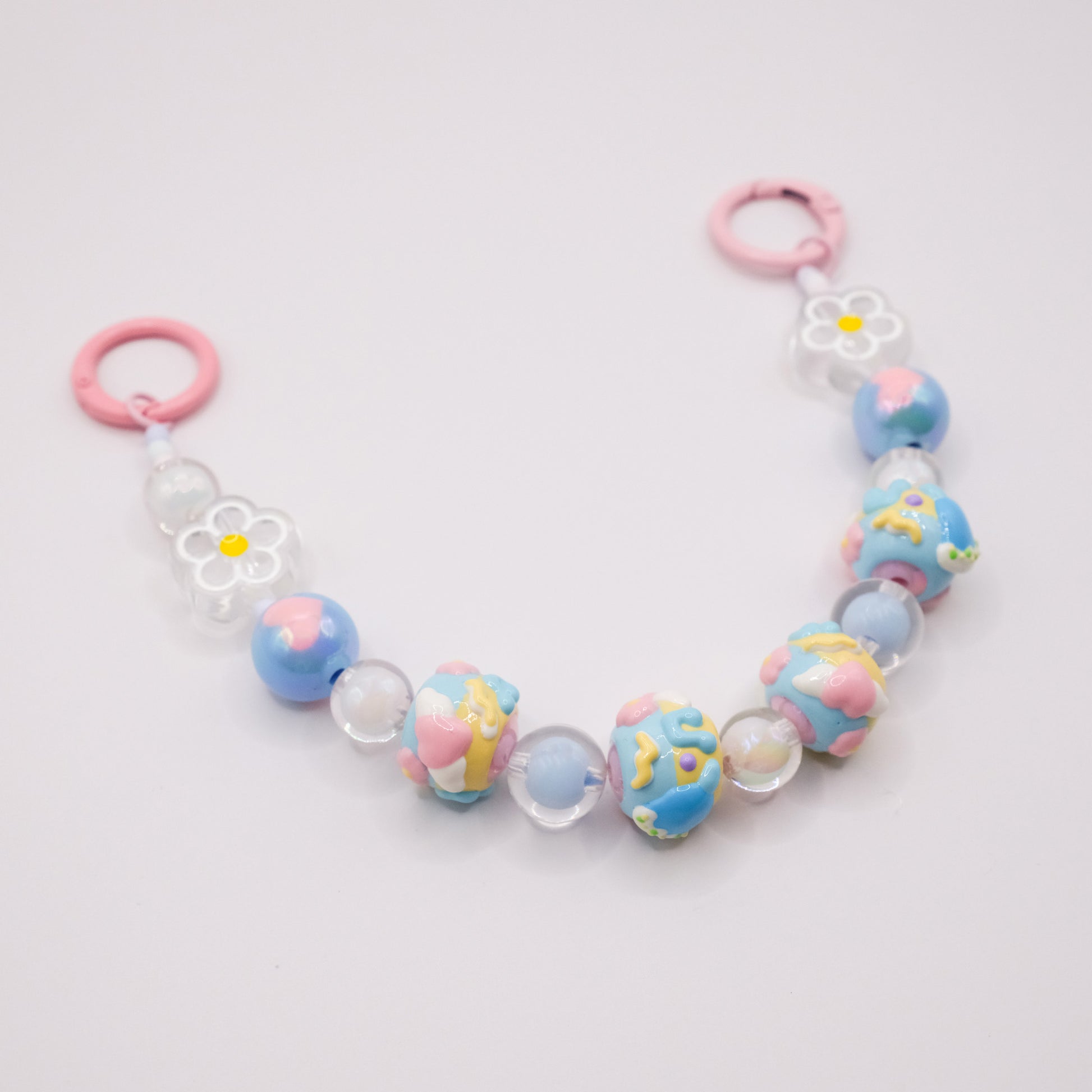 Float into a daydream with this playfully poetic pastel blue beaded charm! Each resin bead is a mini canvas of joy, featuring: