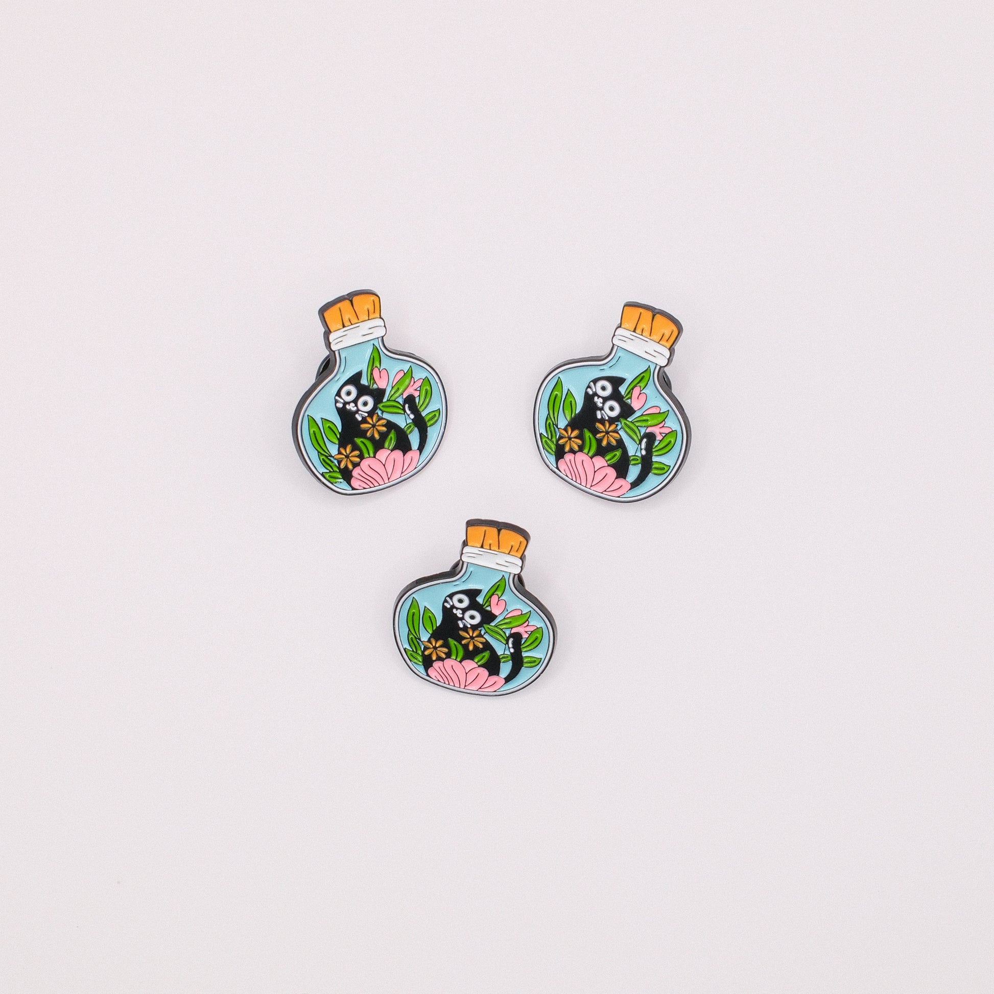 Perfect for cat lovers and plant enthusiasts alike, this pin adds a hint of whimsy to any outfit or bag. Whether you’re collecting cute enamel pins or gifting a fellow feline fan, this one’s pure bottled magic.
